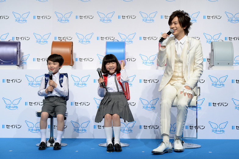 The child actors shared about the commercial shoot: "DAIGO-san was kind and taught us dance steps and wishes," and "I've liked him for a long time, so I was happy to act alongside him." DAIGO also expressed his enthusiasm, saying, "As a DAIGO Angel, I want to spread the word about the Angel Wings." He finished with his signature DAI-speak: "This randoseru is truly KJ (lightweight and durable), so I hope lots of kids will use it."