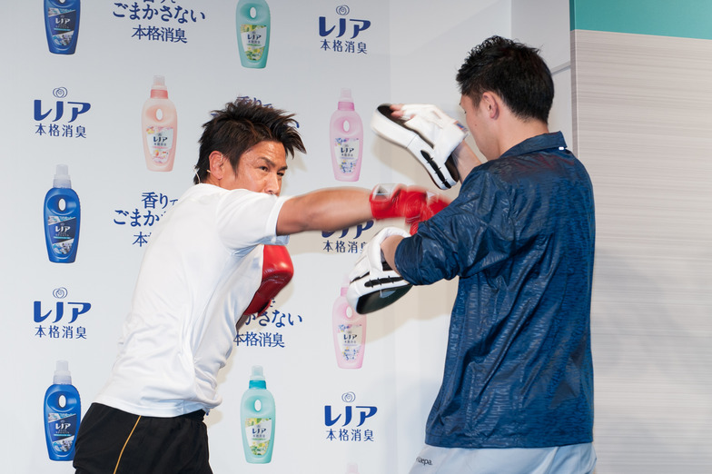 The main event was the "Lenor Authentic Deodorization Title Match," where Matsuko judged on the spot whether sweat was truly neutralized immediately. Guest Masato, former K-1 World Champion, joined her. Masato demonstrated sweating by jumping rope for 201 (smell) seconds and hitting mitts 20.1 times. He gently touched Matsuko with the equivalent of 0.1 mitt strikes, delighting her. Matsukoroid, the Odor Investigator, also appeared on stage to join the judging. Matsuko happily leaned close to Masato and declared, "Truthfully, I want to smell Masato, but I only smell Lenor's nice fragrance," ruling it a victory for the authentic deodorizing effect, albeit with a hint of disappointment?