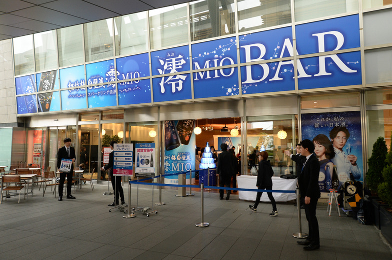 Following the presentation, a one-day-only public tasting event, "Mio BAR," was held at the venue. Alongside Mio tastings, it featured a photo corner with the sofa used in the commercial, an experience corner for the official Instagram "mio_sparkling," and an AR app allowing attendees to toast with Inoue and Tamaki. The event drew large crowds.