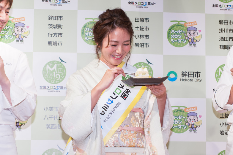 Each shared their aspirations for the Summit. Kurotsuka introduced a melon shortcake, while Jinbo presented a melon smoothie. Isoyama, who sampled both, beamed with delight. The trio conveyed messages such as "We hope you experience delicious melons from all over Japan" and "Please come to the Summit, packed with fun events." All attendees then jointly declared their commitment to the event.