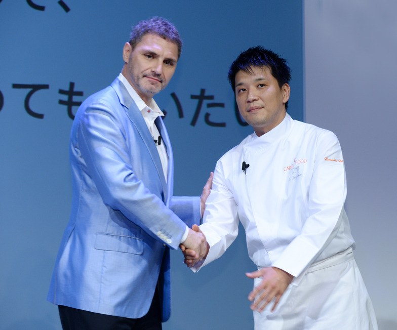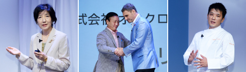 The presentation featured President Kato, a mini-lecture on voice and communication by Professor Jun Shigeno of Aoyama Gakuin University, an explanation of healthy eating by President Harry Hill of Oak Lawn Marketing (which operates and manages Shop Japan), and owner-chef Koji Fujiharu of restaurant "Epicure." Visual and audio effects were used to promote accurate understanding.