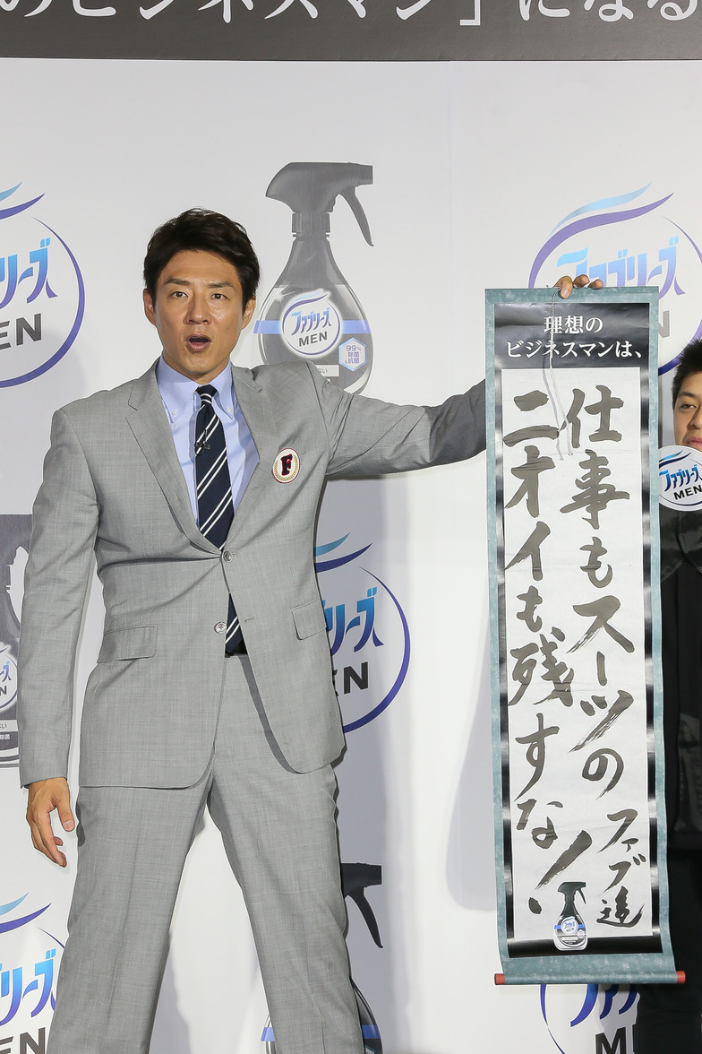 Appearing to the chant "Japanese businessmen, if you're serious, start with 'Fabreze MEN'!", Fabreze's image character, Shuzo Matsuoka, opened by mentioning Kei Nishikori's defeat at the French Open the previous day. "Today, my spirit was nearly broken, so I used Fabreze to deodorize my weak heart. Nishikori's tennis is 'Fab Tennis'. He's consistently won by thoroughly deodorizing his opponents' weaknesses, but this time..." he said, conveying his frustration while highlighting Fabreze's deodorizing effectiveness.