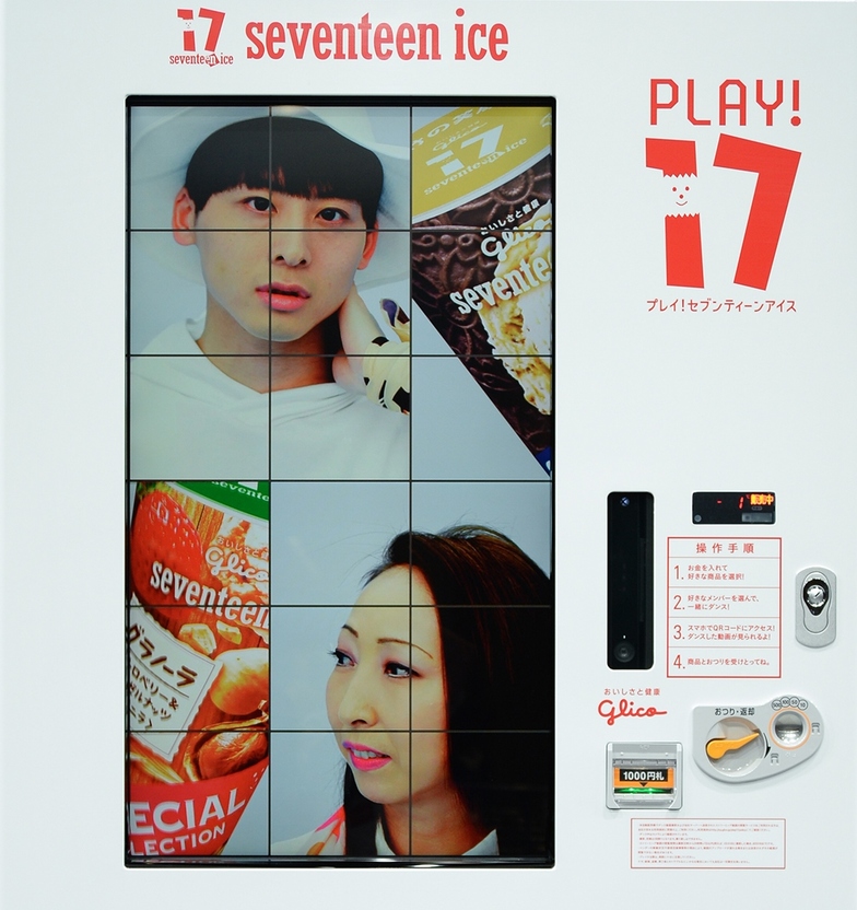 Ezaki Glico has developed a special vending machine for Seventeen Ice called the "Cyber Vender," which allows customers to dance with artists after purchasing the product. It will be installed sequentially at three locations in Tokyo, Nagoya, and Osaka starting in early July.