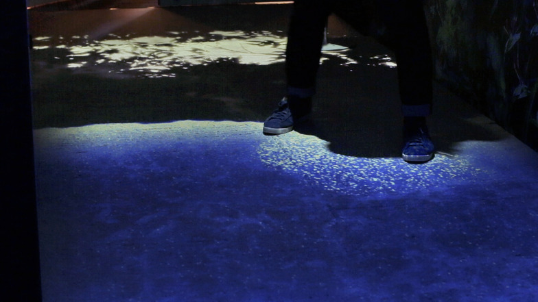 Passing through the beach, a sardine run (a massive school of sardines) appears. Images of fish swimming together as one are projected onto an object inspired by a fish school. Additionally, marine creatures (such as tropical fish) are created on the walls using light, allowing visitors to feel the beautiful birth of life.