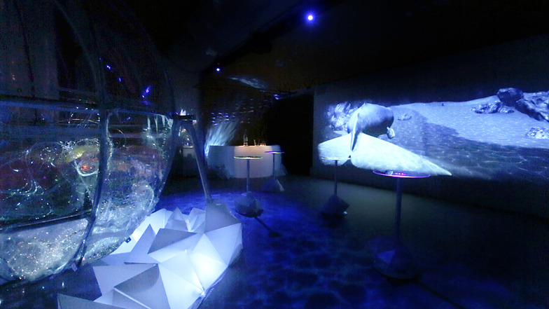 Aquarium is an event where you can experience a journey from the beach to the deep sea, as if diving into the ocean, through all five senses: visuals, music, scent, and more. That said, there are no real tanks or fish like in a typical aquarium. It's designed as an entirely virtual experience, allowing you to journey to the deep sea. It's filled with a world that can only be experienced virtually.