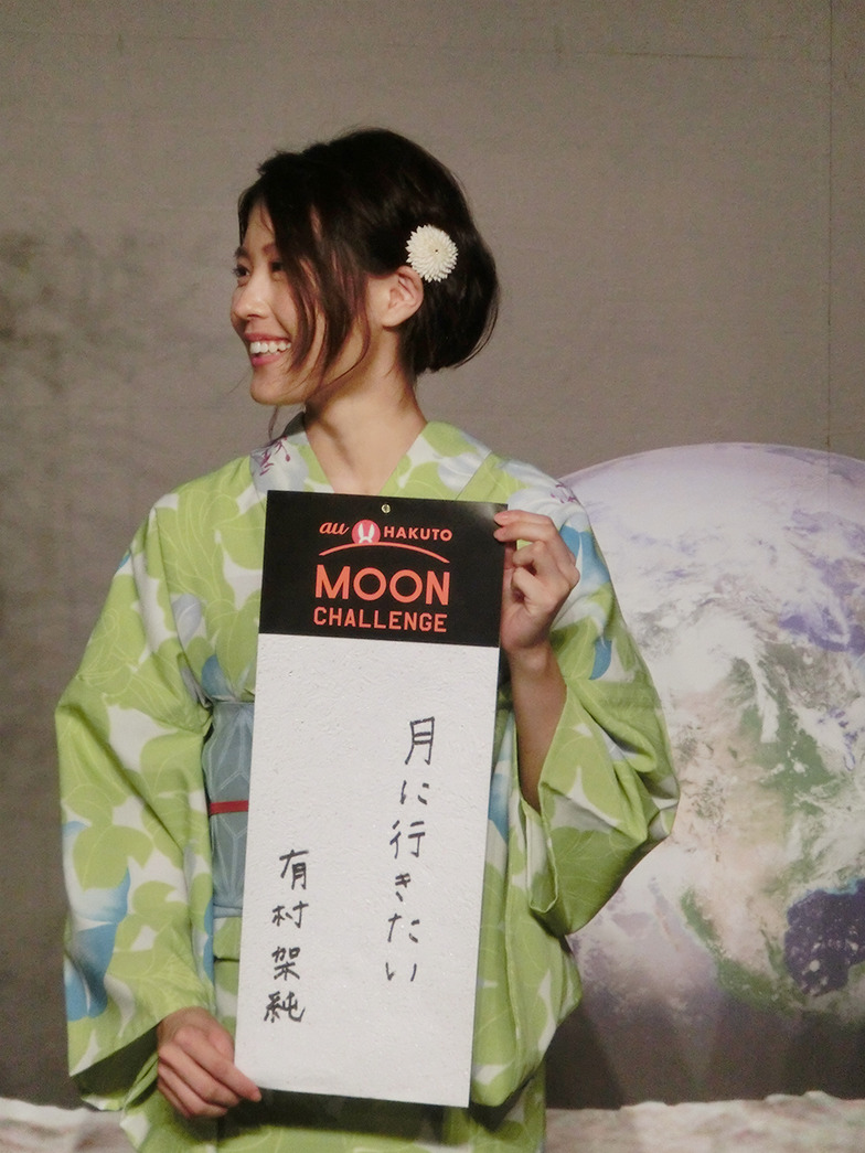 Next, ambassadors Arimura and Shinohara appeared in yukata attire, fitting for the Tanabata festival. Arimura, who portrays Princess Kaguya in au's "Santaro" commercial series and thus has a connection to the moon, expressed her enthusiasm: "This is a huge challenge, and I hope to contribute as an ambassador to help many people learn about it."