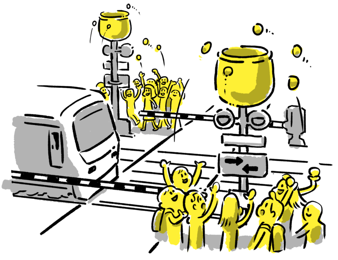 When categorizing the ideas, many focused on the crossing mechanism or the passing train itself. However, the perspective of creating something to entertain people waiting face-to-face was unique. In fact, Germany has already implemented a traffic light system called "STREETPONG." It allows people waiting on opposite sides to play a game against each other, and it seems to have been effective in reducing jaywalking.