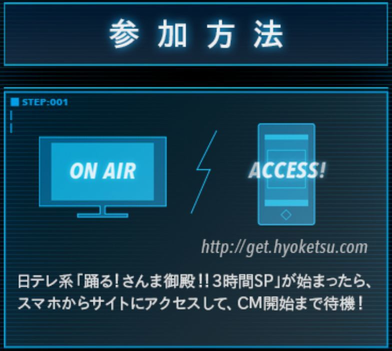 The mechanism involved submitting the unit name as an answer on a smartphone site to enter a prize draw for a year's supply of "Hyoketsu".