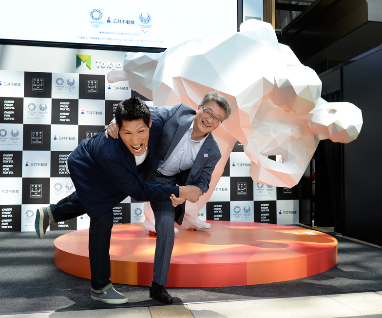 What appeared was a massive judo sculpture capturing the instant of a technique being executed. Shinohara remarked, "Because it's 3D, you can really understand the subtle movements. It stirs the athlete's spirit; it made me want to practice at the dojo again for the first time in ages." When the MC prompted, "For the Tokyo Games?", he quipped, "I might compete in surfing," sparking cheers from the audience.