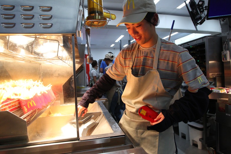 This program is a unique initiative exclusive to the official restaurant, where outstanding crew members (part-time employees working at restaurants) selected from McDonald's locations worldwide experience operations at the special McDonald's restaurant in the Athletes' Village. The program began at the 1996 Atlanta Games, and McDonald's Japan has sent crew members five times in the past.