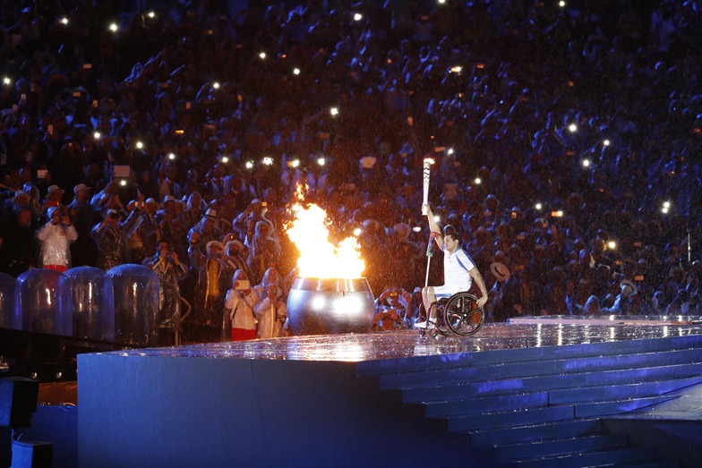 The final torchbearer was Clodoaldo Silva, who won 13 Paralympic swimming medals. The flame was lit on a monument depicting the sun, mirroring the Olympic symbol.