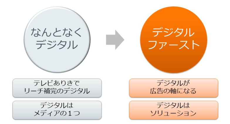 If we call the era where digital media was treated as just another medium alongside TV, etc., the "vaguely digital" era, then the era where digital media is used as a solution capable of designing various elements like target, media, message, and KPI for new demand creation can be called the "digital-first" era.