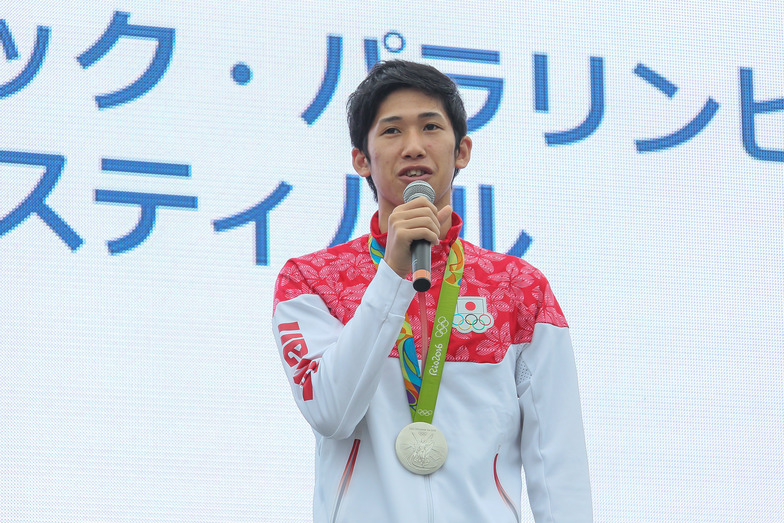 At the stage event, Jun Mizutani, Rio Olympics men's team table tennis silver medalist and singles bronze medalist, Men's Team Silver Medalist in Table Tennis, Maharu Yoshimura, Women's 200m Breaststroke Gold Medalist at the Barcelona Olympics, Kyoko Iwasaki, and Men's Wheelchair Basketball Team Member at the Atlanta, Sydney, and Athens Paralympics, Katsumi Miyake, appeared and spoke about the joy of competing. Additionally, Mizutani and Yoshimura shared humorous behind-the-scenes stories from the Rio Opening Ceremony.
