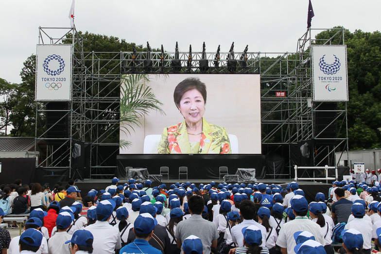At the special venue in Ueno Park, Tokyo Governor Yuriko Koike appeared via video message at the outset. Referring to the closing of the Rio de Janeiro Olympic and Paralympic Games that same day, she commented, "Next, it's finally Tokyo's turn. It's important to accumulate valuable experiences over the next four years and to make those experiences irreplaceable assets for life." She called on the children to hold onto their dreams, respect the world's diverse people, and think about and act on what they can do themselves for the Tokyo 2020 Olympic and Paralympic Games.