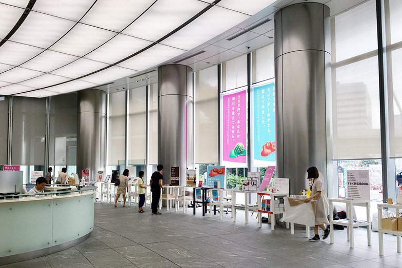 As their culminating graduation project, the students planned and produced "Calendars with Ideas." The 19 different calendars were sold at the entrance of Dentsu Inc.'s headquarters building for four days, from August 22nd to 25th. The students competed based on daily sales and the satisfaction ratings from buyers.