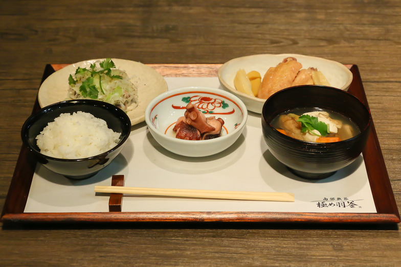 During lunchtime, they offer the "Ultimate Meal Set" featuring rice cooked in the pressure IH rice cooker "Nanbu Tekki Ultimate Haga-kama" and one soup with three side dishes, limited to 100 servings per day.