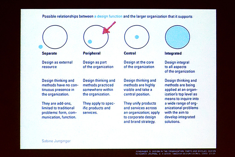 The position of the design function within the organization significantly impacts the precision of service design. When Adaptive Path was initially acquired, it seems they were only involved in a limited scope of design for Capital One. Being at the center of the organization makes the approach easier, but to truly unleash the power of service design, it requires engaging various business units and co-creating integrated services centered around the customer experience. This, he stated, simultaneously means delving into organizational issues.