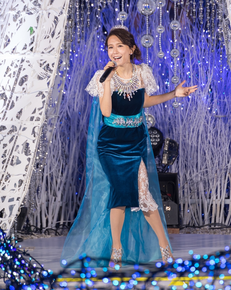 Dressed in a gown inspired by the "Blue Spirit," May J. performed songs from her new album, including a "Santa Claus Medley," adding a special touch to the ceremony.