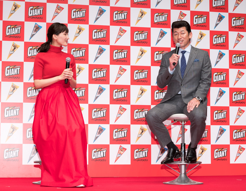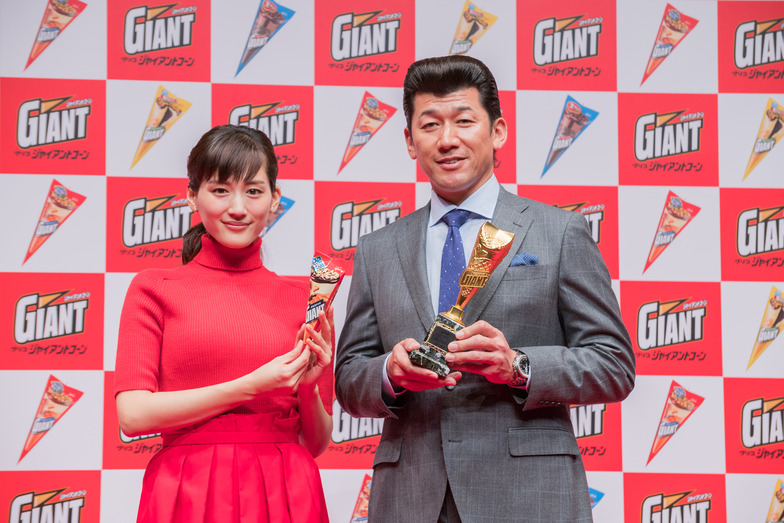 When the conversation turned to Ayase's long career as an actress, she laughed and said, "It's been a while," while promoting Giant Cone, which has been loved for 50 years. When she started to say, "50 years ago, Miura-san...," she hesitated. Miura replied, "I'm 43, so I wasn't even born yet," and the venue erupted in laughter. After a consistently warm conversation, including talk about TV commercials featuring pro wrestler Giant Baba, Ayase presented Miura with a trophy and bouquet, saying, "For 25 years of unceasing effort and for moving so many people." Miura beamed, saying, "Hearing 'Good job!' from such a popular actress is truly moving."