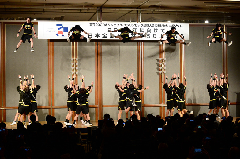 In the cultural and artistic performances, the men's cheerleading team "Waseda University Shockers" performed an energetic cheer routine set to upbeat music. Mr. Koichi Omae, the "prosthetic leg dancer" who also performed at the Rio Paralympic Closing Ceremony, danced a fantastical routine, drawing loud applause from the audience.