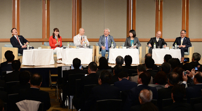 The event concluded with a panel discussion titled "Ideas for Generating Enthusiasm and Creating Legacies Across Japan." Moderated by Professor Munehiko Harada of Waseda University, panelists included Rio Olympic swimming bronze medalist Natsumi Hoshi, Rio Paralympic judo silver medalist Makoto Hirose, Professor Emeritus Masayoshi Aoyagi of the University of Tokyo, Kumi Imamura, Representative Director of NPO Katariba; Yoshiharu Abe, Mayor of Imabetsu Town, Aomori Prefecture; and Kenichiro Tada, Director-General of the Olympic and Paralympic Games Office, Cabinet Secretariat. The discussion proceeded with the underlying expectation of leveraging the 2020 Games to solve various challenges faced by regional areas. Active debate ensued from each participant's perspective, covering topics such as "enhancing young people's self-esteem through volunteer participation," "the potential for economic exchange beyond international exchange," "the secrets to attracting pre-Games training camps," and "reevaluating local culture and actively disseminating information."