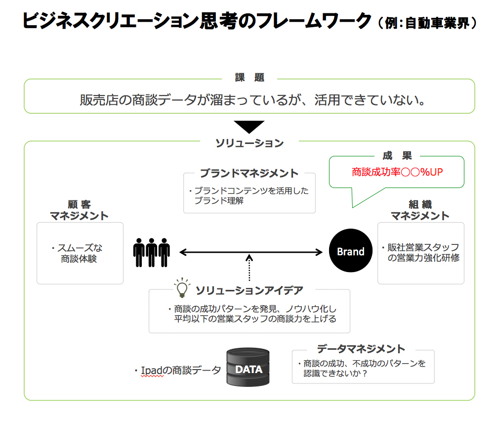 Services like Uber, which lets you hail taxis via smartphone, and Airbnb, which enables renting unused rooms to travelers, are becoming well-known even in Japan. These are prime examples of businesses succeeding by leveraging location data, matching data, new technologies, and content. In the lecture, we introduced a conceptual framework for business creation, as shown in Figure 1, and provided hints for innovating the relationship between customers and brands by exploring what data to utilize.