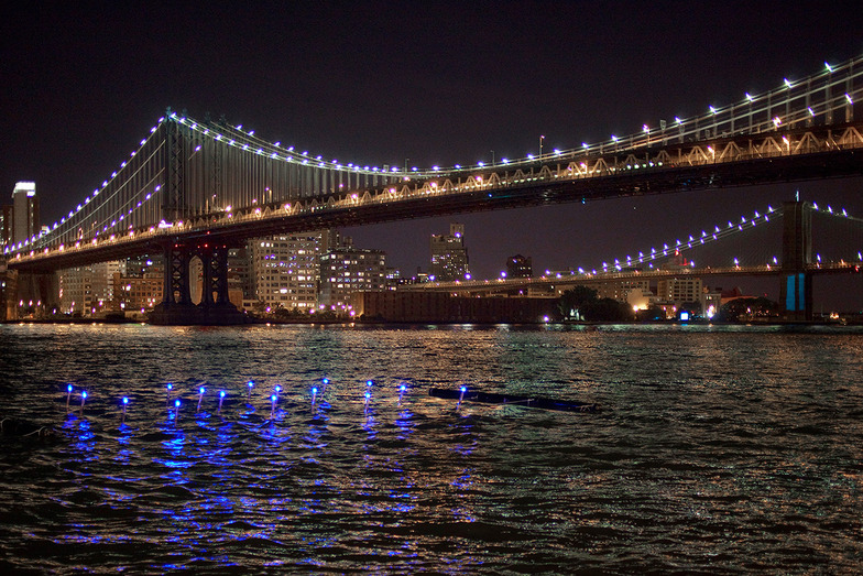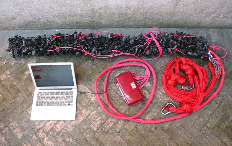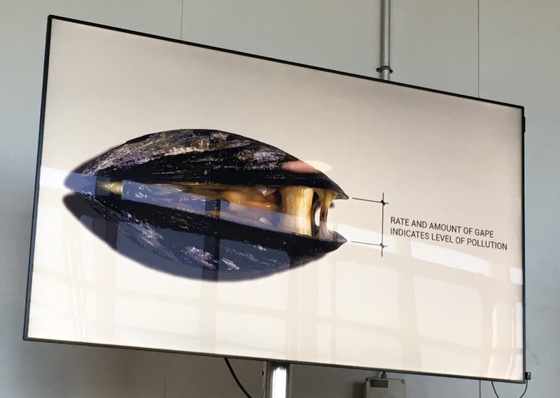 Pier 35 EcoPark is an example using "shellfish" as sensors. The degree to which the shells open can measure water pollution levels, reportedly more accurately and cheaply than any existing sensor. Utilizing this property, an installation where the color of light changes based on water pollution levels was implemented in New York's East River.