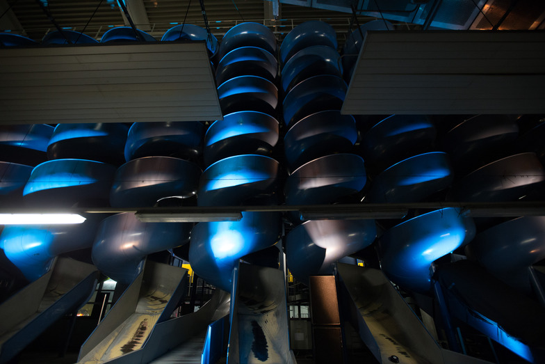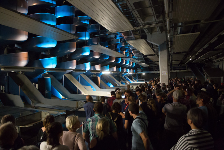 The venues are spread across several locations in Linz city, with exhibitions, symposiums, performances, and more taking place at each one. The main venue is POST CITY, located near Linz Central Station. It utilizes the original post office building as-is. Inside, it's vast and open, with spiral chutes—once used for sorting mail—found everywhere.