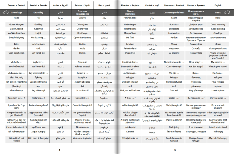 Amidst this, the Refugee Phrasebook began in August 2015 as several community projects in Berlin. Within about a year, it grew into an international open data project covering 44 languages, thanks to volunteers from various fields.