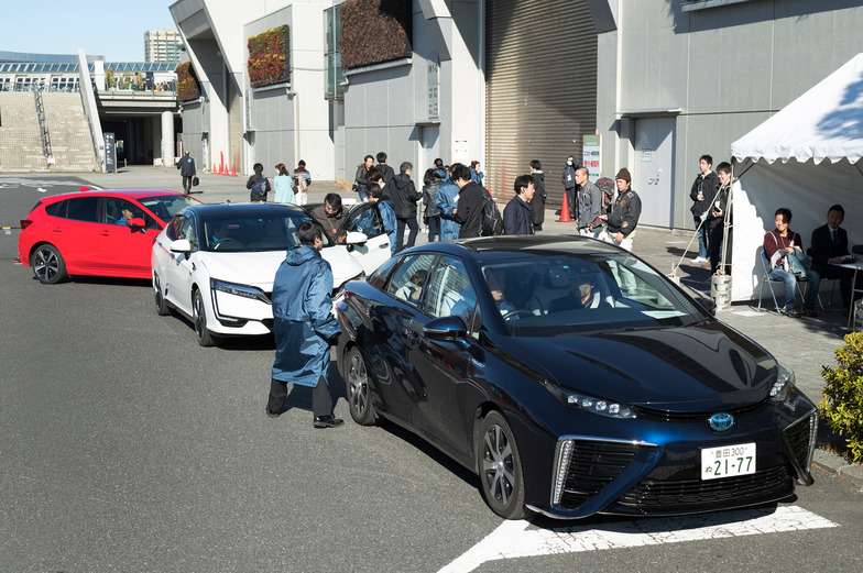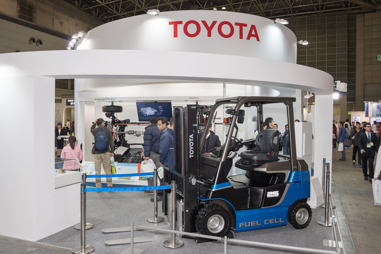 As cutting-edge technologies and products for realizing a hydrogen society, Panasonic exhibited pure hydrogen fuel cells, while Toyota Motor Corporation showcased Japan's first "fuel cell forklift."