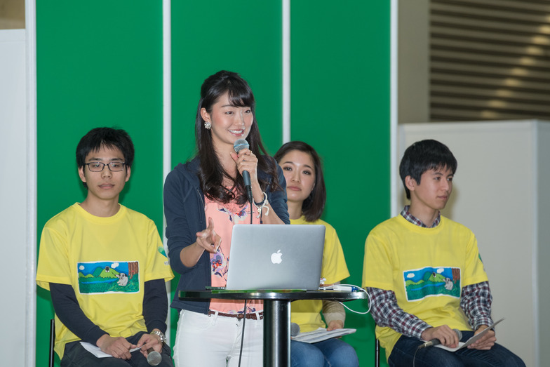 Hosted by the Japanese-American comedy duo Pakkun Mackun, the stage featured 2016 Miss Japan Green Goddess Hona Iizuka and the student team "YRN" (pronounced "Yaan"). The four, who traveled to Indonesia this year as REDD+ Official Correspondents, reported on their findings regarding deforestation and REDD+ activities, along with their post-trip PR efforts. They presented field reports on the effectiveness of a project halting deforestation by promoting cocoa cultivation and enhancing product value, along with their interactions with local communities. They shared reflections such as, "Seeing the situation firsthand heightened my environmental awareness," and "I felt proud that Japan's support is making a difference."