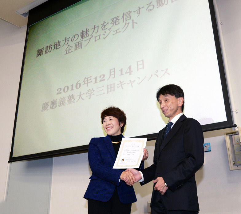 The charms of Suwa uncovered by each team—such as "local miso," "diverse tourist spots," "film locations," and "scattered mystery spots"—were varied and captured the judges' interest. The presentation by the Keio Girls' High School team, who voluntarily participated in the Fujita Seminar, was structured with solid logic based on an analysis of the feelings of their own generation, unique to current students. Along with the high quality of their video, it earned praise from the audience. The video is a short film about a high school girl who had lost hope, meets her mother who passed away in Suwa, and gains the strength to live.