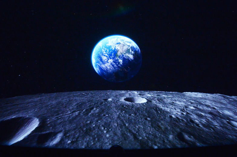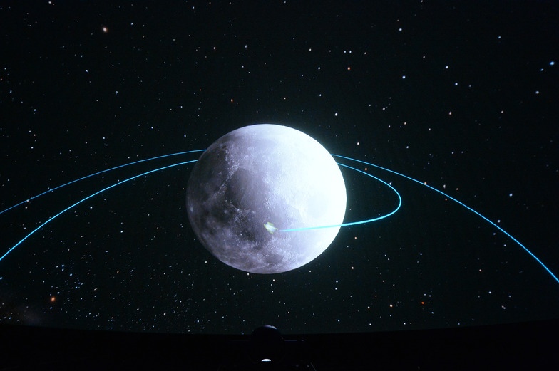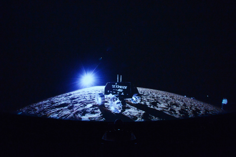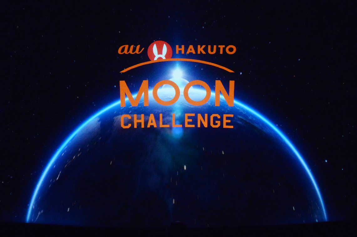 A planetarium show themed around "au × HAKUTO MOON CHALLENGE" begins screening.