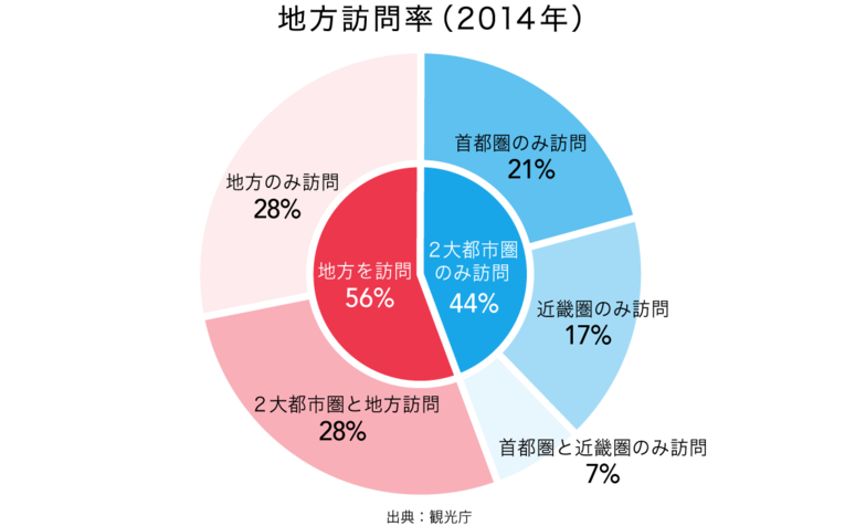 Furthermore, foreign tourists visiting regional areas accounted for only 56% of the total (2014). This means that attracting the increasing number of foreign tourists to regional cities and encouraging them to spend there represents a significant business opportunity for these areas.