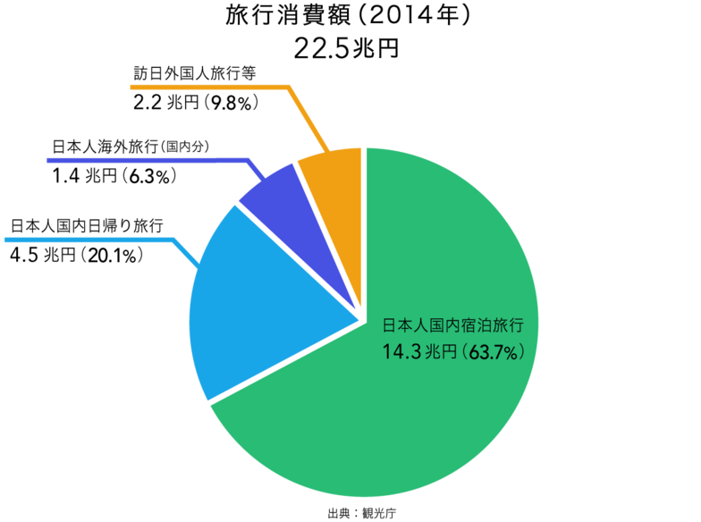 In contrast, inbound foreign travel amounted to only 2.2 trillion yen, or 9.8%. However, while domestic overnight travel has been shrinking year by year, inbound foreign travel is growing, playing a role in expanding the overall pie.