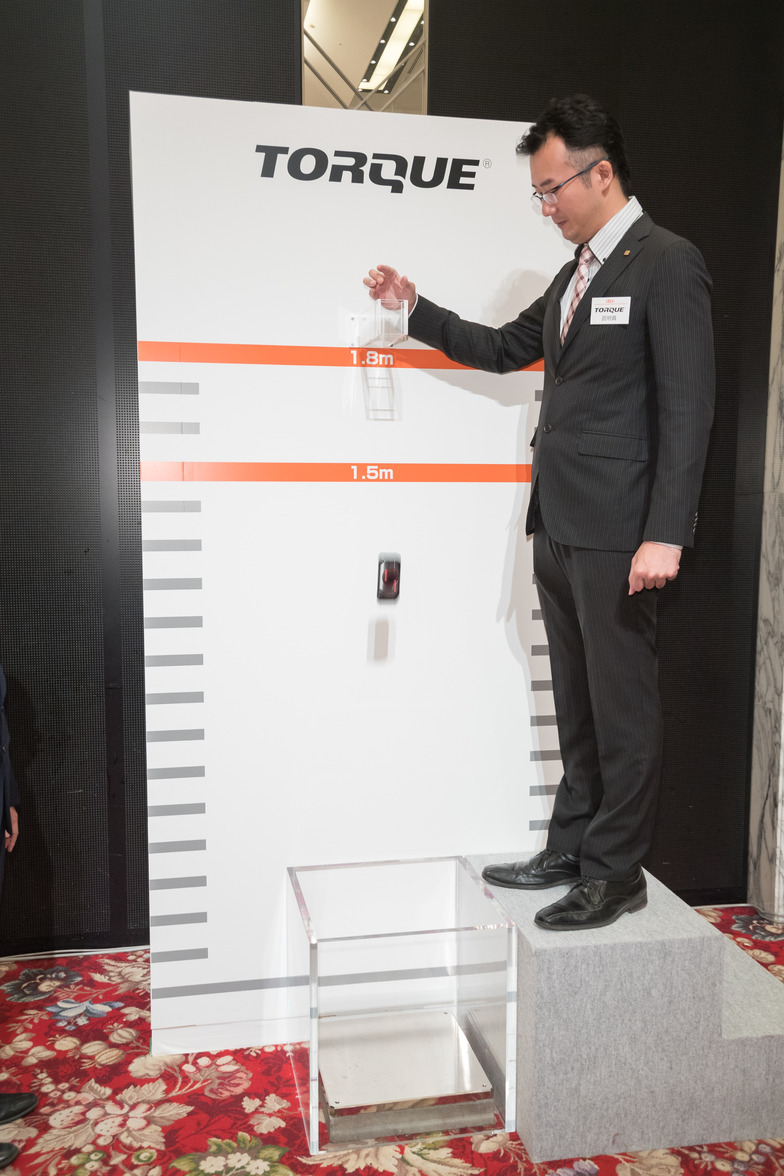 At the adjacent Touch & Try corner, alongside displays of new models and service introductions, features were promoted through demonstrations like the "Torque" drop test and the "Laure" water-wash demonstration.
