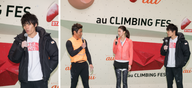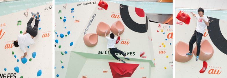 The kickoff event on the first day featured a visit from Tomoya Narasaki (2016 Men's Bouldering World Ranking 1st), a member of "TEAM au" who became the first Japanese winner at the 2016 IFSC (International Federation of Sport Climbing) Climbing World Championships in Paris.