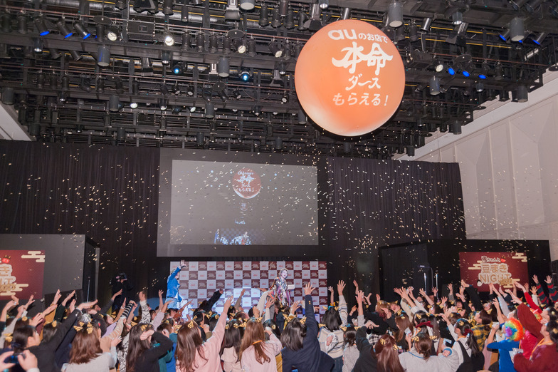 Suda shared his New Year's resolution: "With au's 'Let's try it!' spirit, I want to challenge myself in everything," before posing for a commemorative photo with everyone.