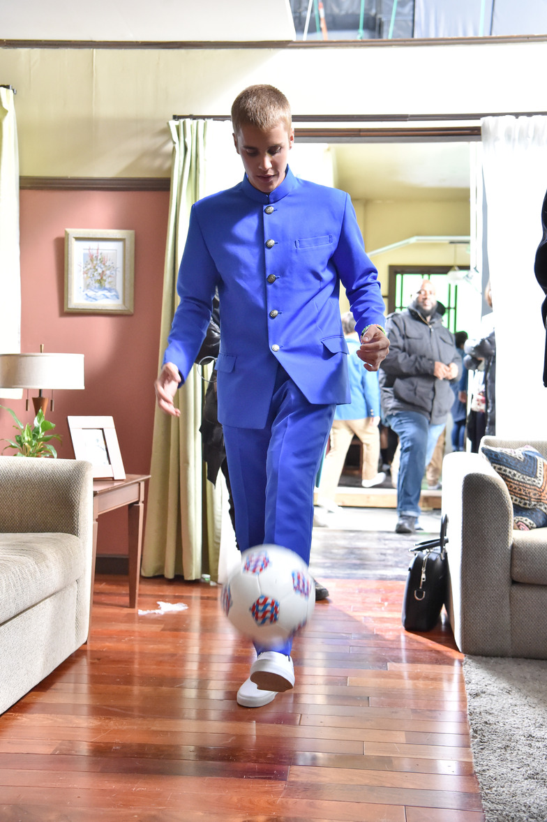 Inside the school's broadcast room is Bieber, dressed in a school uniform. Leaving the room, Bieber greets passing students with a friendly wave as he heads down the hallway lined with classrooms. Amid narration stating, "We're not just looking at smartphones," and "We're looking at the world beyond the smartphone," he spots a familiar woman in a classroom and waves. Responding with "Hi, Justin!" is Suzu Hirose. Sakurako Ohara, standing next to her, exclaims in surprise, "He really came..."