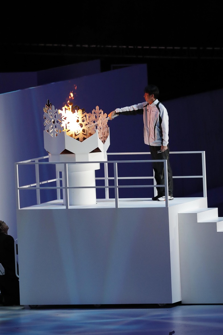 Part 2 featured uniquely Hokkaido welcome performances, including traditional dances by the Hokkaido Ainu Association, the spirited Yosakoi Soran dance, and lively dances by the younger generation. The torch relay featured former speed skater Hiroyasu Shimizu and others, culminating in former ski jumper Masahiko Harada lighting the cauldron as the final torchbearer.