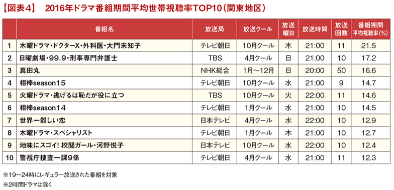 What did you think? Looking back at the topics surrounding television in 2016, it really hits home how commonplace it has become for TV content to spark buzz on social media, or conversely, for online excitement to drive TV viewership, and for TV content to be consumed in diverse ways like timeshift viewing and web video streaming. Furthermore, 2016 saw the continued spread of VOD services like the commercial broadcaster portal "TVer," "Hulu," and "Netflix." Additionally, the internet TV service "AbemaTV" dramatically increased its app downloads in just over half a year since its April launch.