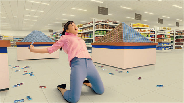 The scene is set in a supermarket, where Hashimoto moves through the aisles with light steps to the music. Eating a Puccho triggers her imagination, where the movie character Rosita the pig dances and sings in the same outfit as her. Back in reality, Hashimoto jumps over stacks of Puccho candy piled high on the shelves, landing with a stylish knee slide. A store clerk nicknamed "Puccho-kun" watches, rolling his eyes and muttering, "She's at it again."