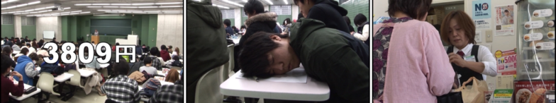 〈Concept〉University tuition is approximately ¥3,809 per class. That money comes from our parents working hard. We students forget this and easily skip classes. Let's remember our gratitude to our parents and take classes seriously.