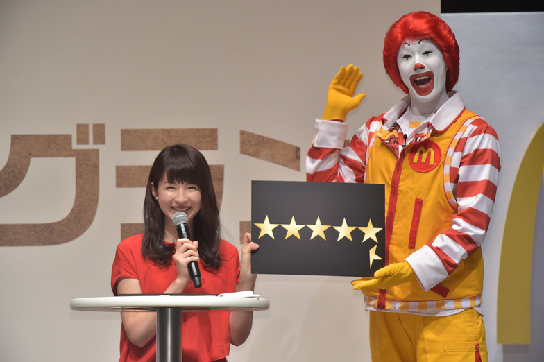 Announcer Rio Hirai, who plays a field reporter in the news-style TV commercial "Breaking News" airing from the 4th, appeared on stage alongside Donald. Hirai expressed her excitement: "I'm a regular at McDonald's. I get thrilled every time a limited-time menu comes out. This time, it's a regular menu after eight years, and they're launching three varieties simultaneously – I just can't help but be excited!"
