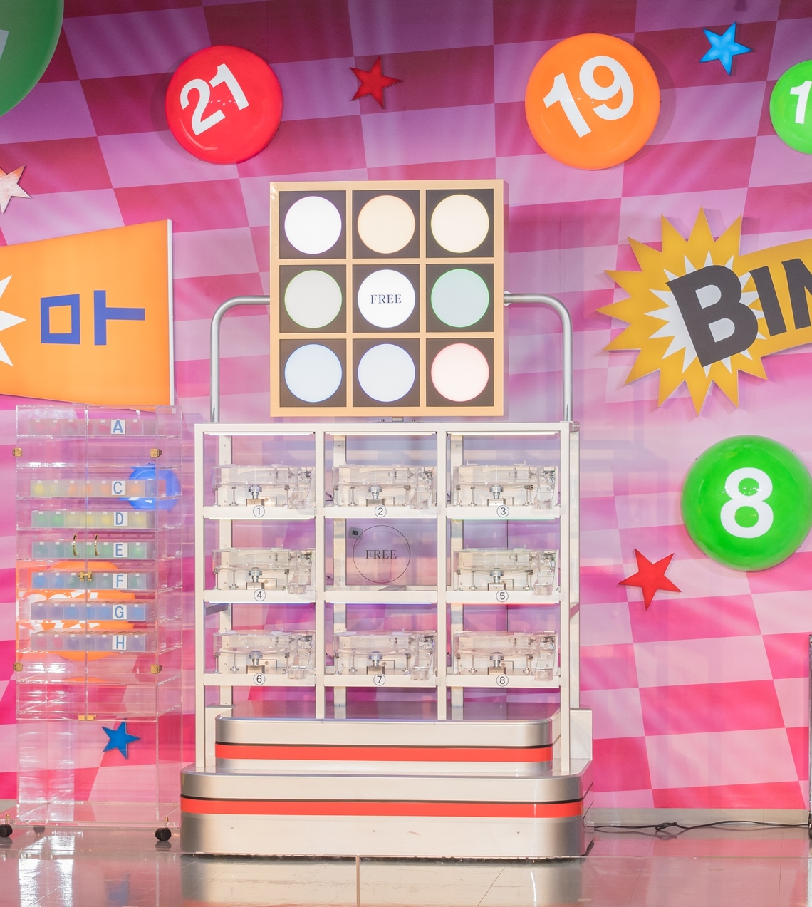 On stage, the lottery commenced with the call, "Let's Bingo!" A specialized bingo lottery machine (an electric centrifugal lottery machine) was used. Eight balls, each marked with a corresponding number, were placed in the machine's compartments. Centrifugal force determined the winning numbers. The venue buzzed with excitement each time a number was announced, the murmurs growing louder as the process continued. The atmosphere was exactly like that of a bingo game at a party.