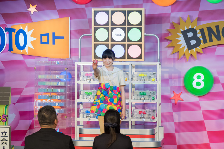 The first draw for the new number-selection lottery "Bingo 5" was held on April 5 at the Tokyo Lottery Dream Hall in Chuo Ward.