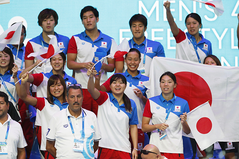 During the event, competitions were held in swimming, synchronized swimming, diving, high diving, water polo, and open water swimming. Over 2,500 athletes from more than 180 countries and regions participated. Japan dispatched approximately 120 representatives, including athletes and officials, to this biennial "world championship" of swimming.