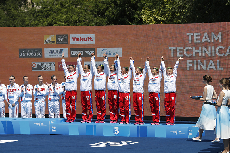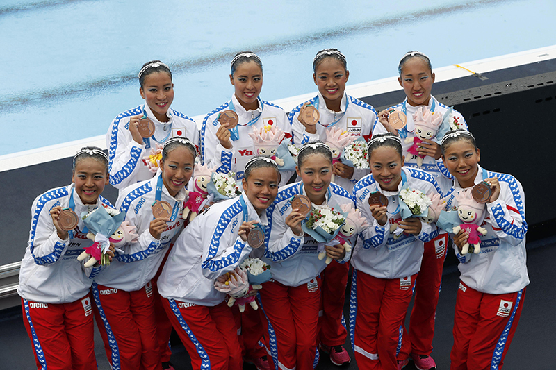 The Japanese team won bronze medals in the Team Technical Routine and Free Combination events, but their performance was somewhat subdued compared to the four bronze medals won at the previous championships (2015, Kazan, Russia).