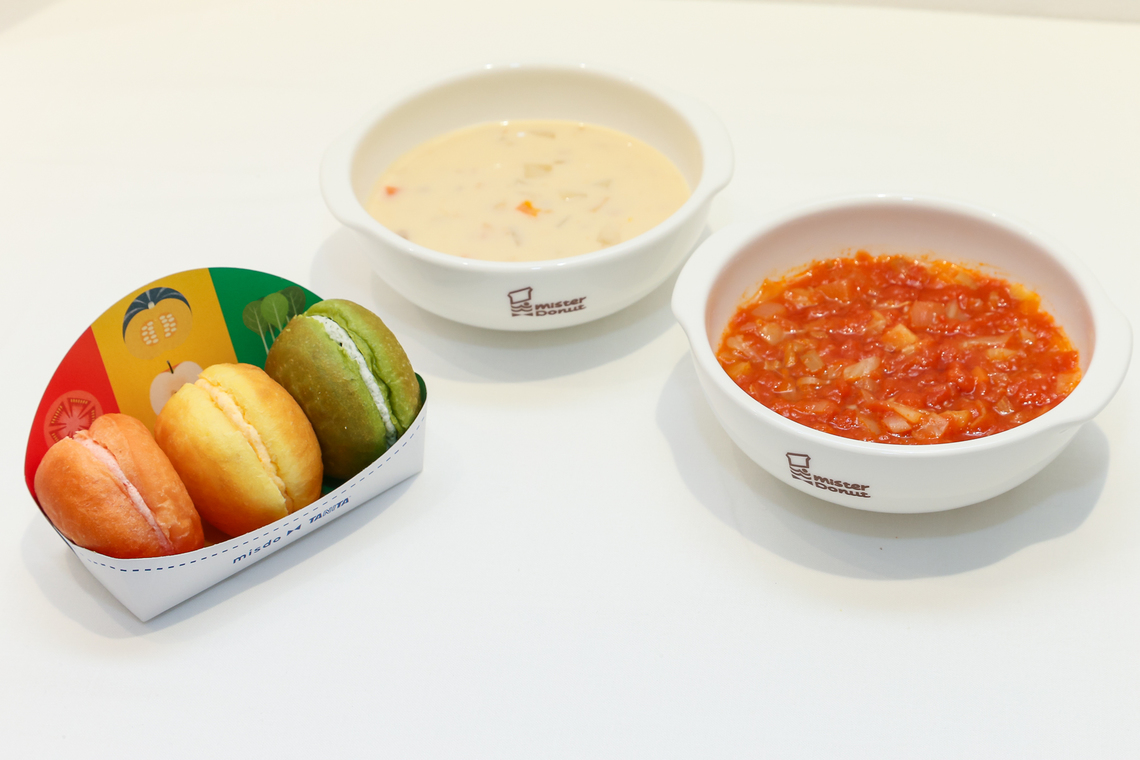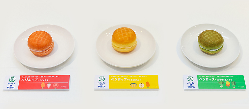 As the fourth installment of this initiative, it will launch three colorful "Veggie Pop" donuts (strawberry & tomato, apple & carrot, pineapple & spinach) developed jointly with Tanita, which advocates "healthy eating habits," for a limited time starting August 25.