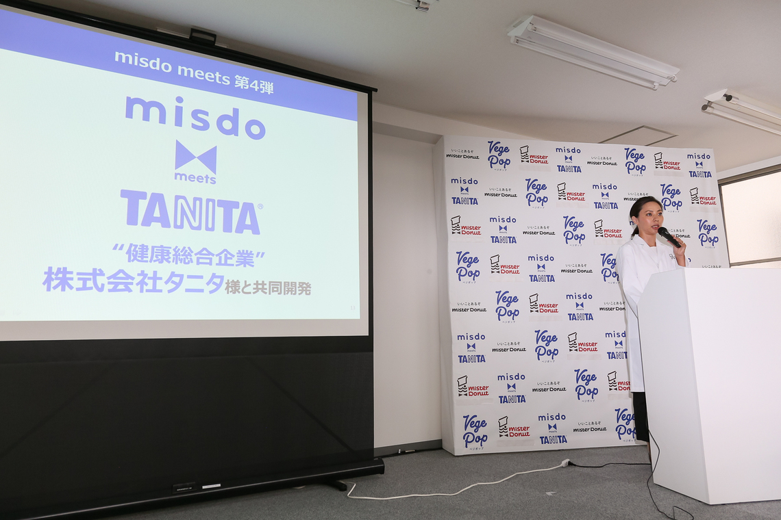 Miki Suzuki from Mister Donut's Business Headquarters explained the development background: "We often hear 'I want to eat donuts but I'm concerned about my health.' This time, we wanted to create a sweet that balances healthiness and deliciousness for health-conscious individuals, primarily our key customers: women in their 20s to 40s. That's why we selected Tanita."
